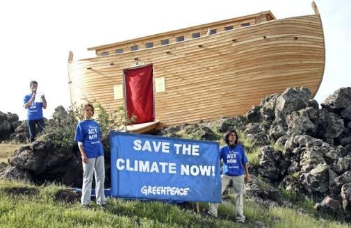 L'organisation Greenpeace vient de monter un beau coup médiatique pour attirer l'attention sur les risques produits par le réchauffement climatique global, en fabriquant sur le mont Ararat (en Turquie) un bateau qui rappelle l'histoire du déluge biblique. Façon de dire : "Voici ce qui nous guette si nous continuons ainsi", ou bien "N'ayons pas une attitude du type "après nous le déluge". C'est bien joué, et plutôt amusant. Mais comment réagissent les médias?