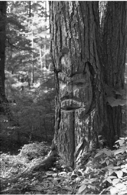 Ci-contre, un arbre sculpté en territoire Gitxian (Colombie britannique, d'apr. R. Andersson).