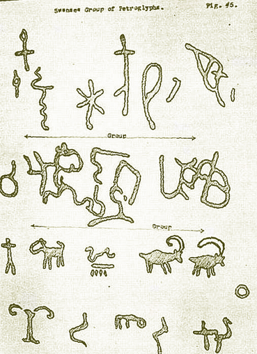Clifford Baldwin avait arbitrairement regroupé des images individuelles dans un ordre permettant de gagner de la place dans son manuscrit, et tous les auteurs qui l'ont plagié ont cru que cet ordre était celui qui avait présidé à l'arrangement réel des images sur le site. Barry Fell, adepte de "la préhistoire par les étoiles" a cru faire une extraordinaire découverte, sans prendre la peine de rien vérifier.