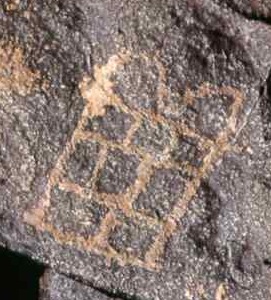 Cette sympathique remarque m'a conduit à revoir cette image, et je crois qu'on pourrait tout aussi bien y reconnaître un parcellaire, comme le font souvent les rupestrologues pour ce type de gravure, ou bien le hiéroglyphe de la montagne, ou bien tout ce que vous voudrez.