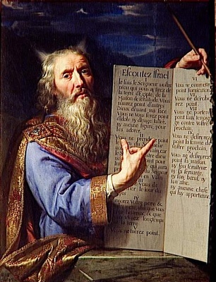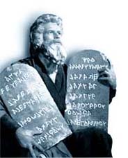 Musée Virtuel du Protestantisme Français). L'image de l'écriture rupestre du décalogue sur deux blocs arrondis en haut a été on ne peut plus diffusée par le film de Cécil B. de Mille, tourné en 1956. On se souvient notamment de la belle figure de Charlton Heston, dans le rôle d'un Moïse dont, faut-il le préciser, rien ne prouve l'existence historique: