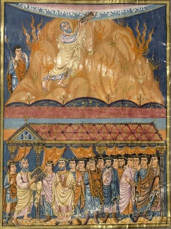 C'était déjà le cas sur une miniature de la première Bible de Charles le Chauve (IXe siècle) conservée à la BNF: